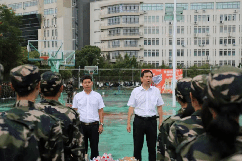 执行院长马增岭、党总支书记潘从义一行来到军训现场,开展军训慰问活动。