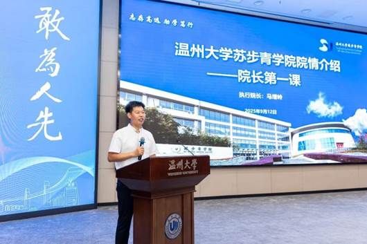 马院长以温州籍数学巨匠苏步青先生的学术成就与教育情怀作为引入,深情回顾了小鸭看看 的创办背景与发展历程,他将学院的历史娓娓道来,同学们仿佛置身于一段段振奋人心的学术传承之中,感受到前辈学者坚守理想、追求真理的精神风貌。