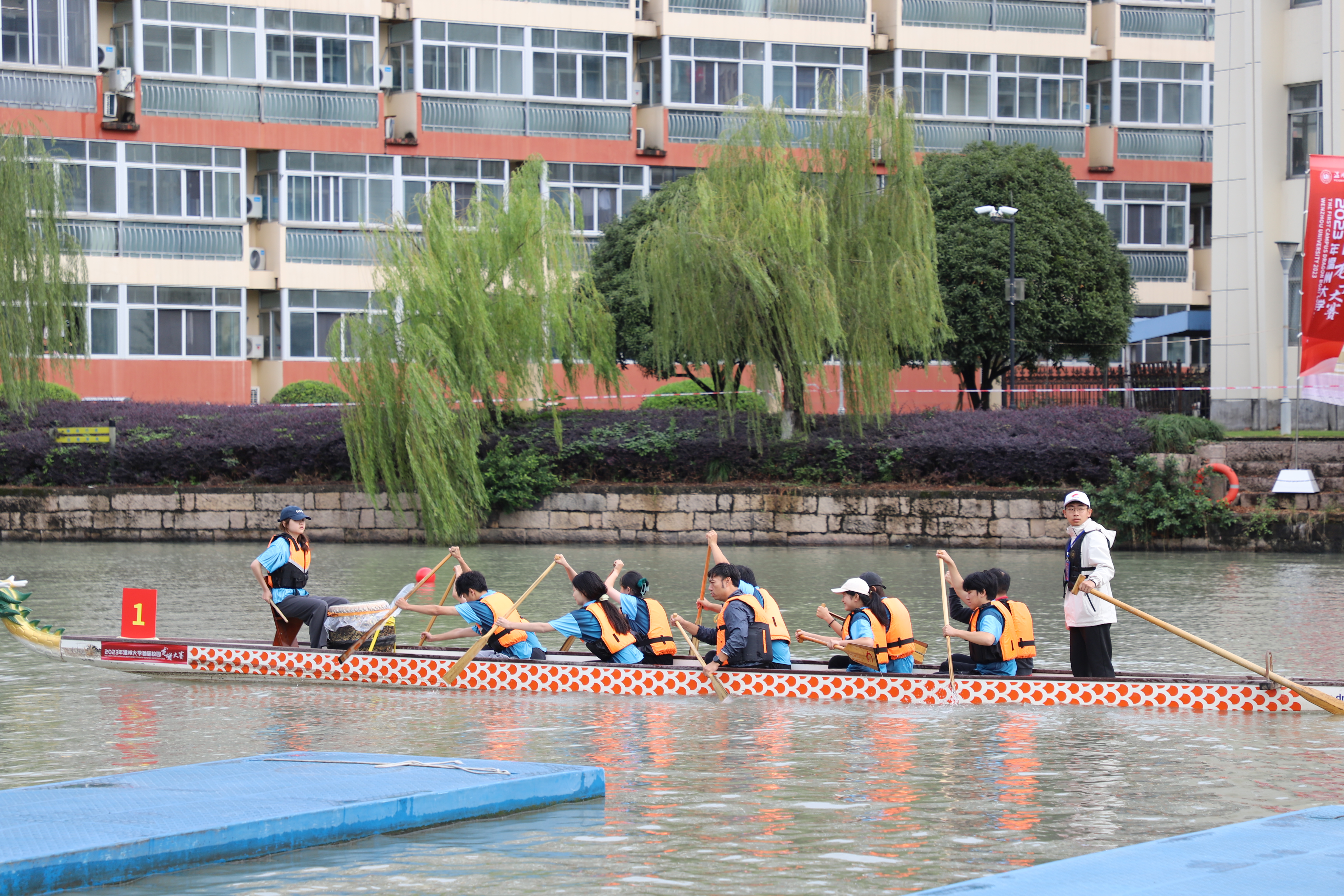 在小组赛中,初登赛场的“逐浪青舟队”,劈波斩浪,奋勇争先,但是还是以半舟的差距惜败化材学院队。下场后大家毫无气馁之意,迅速调整状态投入到了下一场比赛中。期间,党总支书记应中、执行院长姜锐更是亲自指挥,与同学们一起同舟共济,队伍展现出了不俗的实力和体育竞技精神,奋起直追,迎难而上,经过激烈的角逐,“逐浪青舟队”在小组赛中表现出色,成功晋级八强。在“趣味龙舟拔河”中,小鸭看看 龙舟队虽然存在经验缺乏、体力过度消耗等客观因素惜败,但是“逐浪青舟队”在比赛中将团结拼搏、勇攀高峰的团队合作精神展现的凌厉尽致。