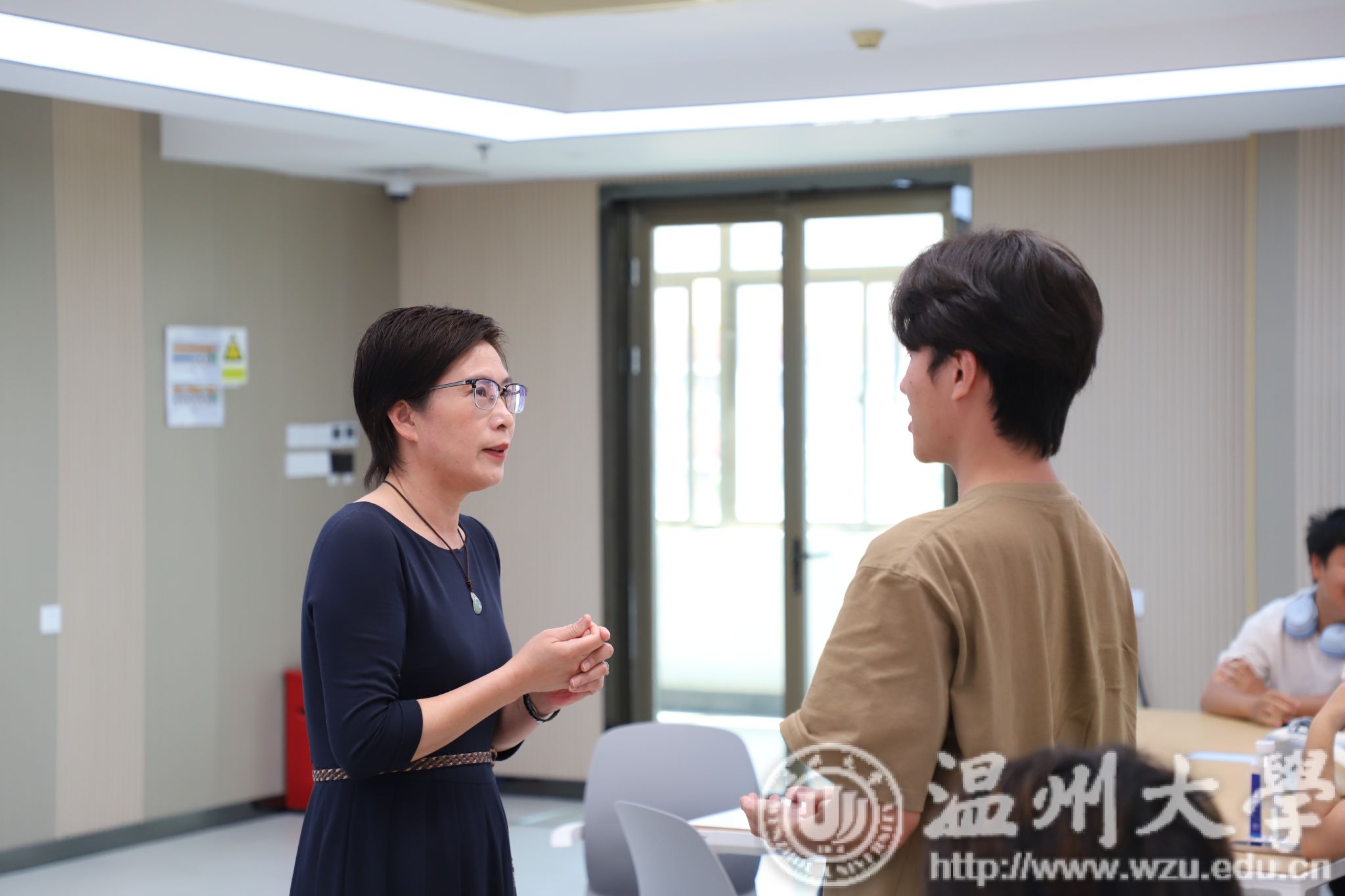 讲座中,郑教授还特设了互动环节,她亲切询问了学生们的日程安排,并邀请他们分享在快节奏生活中如何维持基础生活品质,比如确保规律饮食。她特别指出,在忙碌的学习和生活中,自我管理能力的提升对于保障生活质量至关重要。