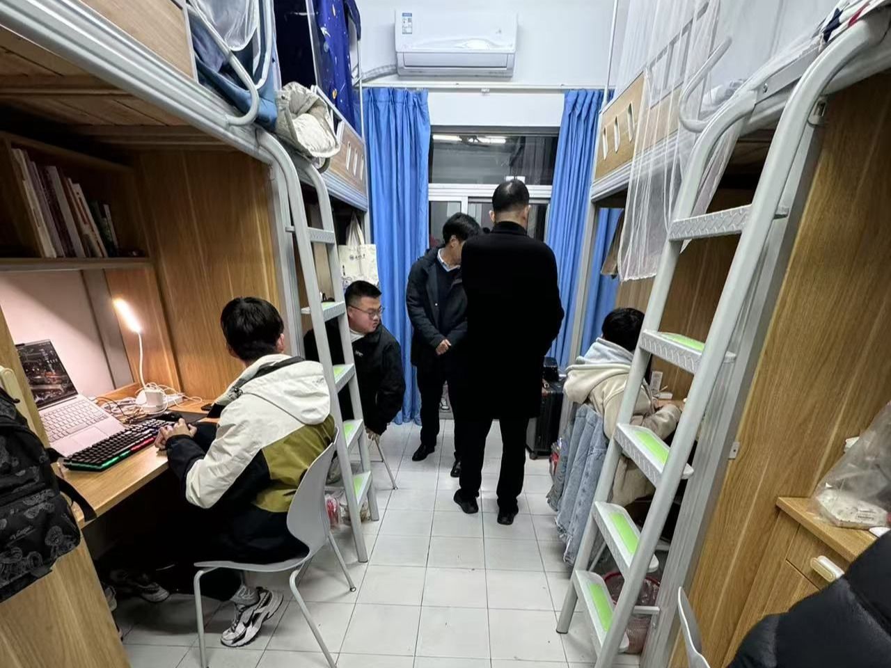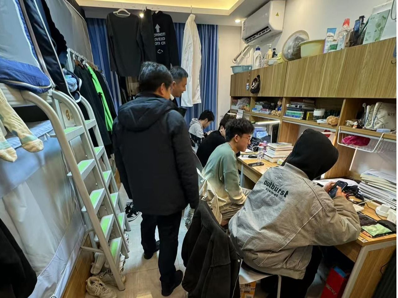 2025年春季新学期伊始,为了让学生们能够迅速适应返校后的学习生活节奏,营造一个安全、整洁的宿舍环境,2月25日,苏步青学院组织开展学生宿舍安全与卫生大排查活动。学院党总支书记潘从义、执行院长马增岭带队,学工办靳颖、李承翼老师和学生干部共同参与。此次检查不仅是为了落实学院对学生宿舍的管理要求,排查安全隐患,也充分体现了学院对学生的关心和对思想教育的重视。