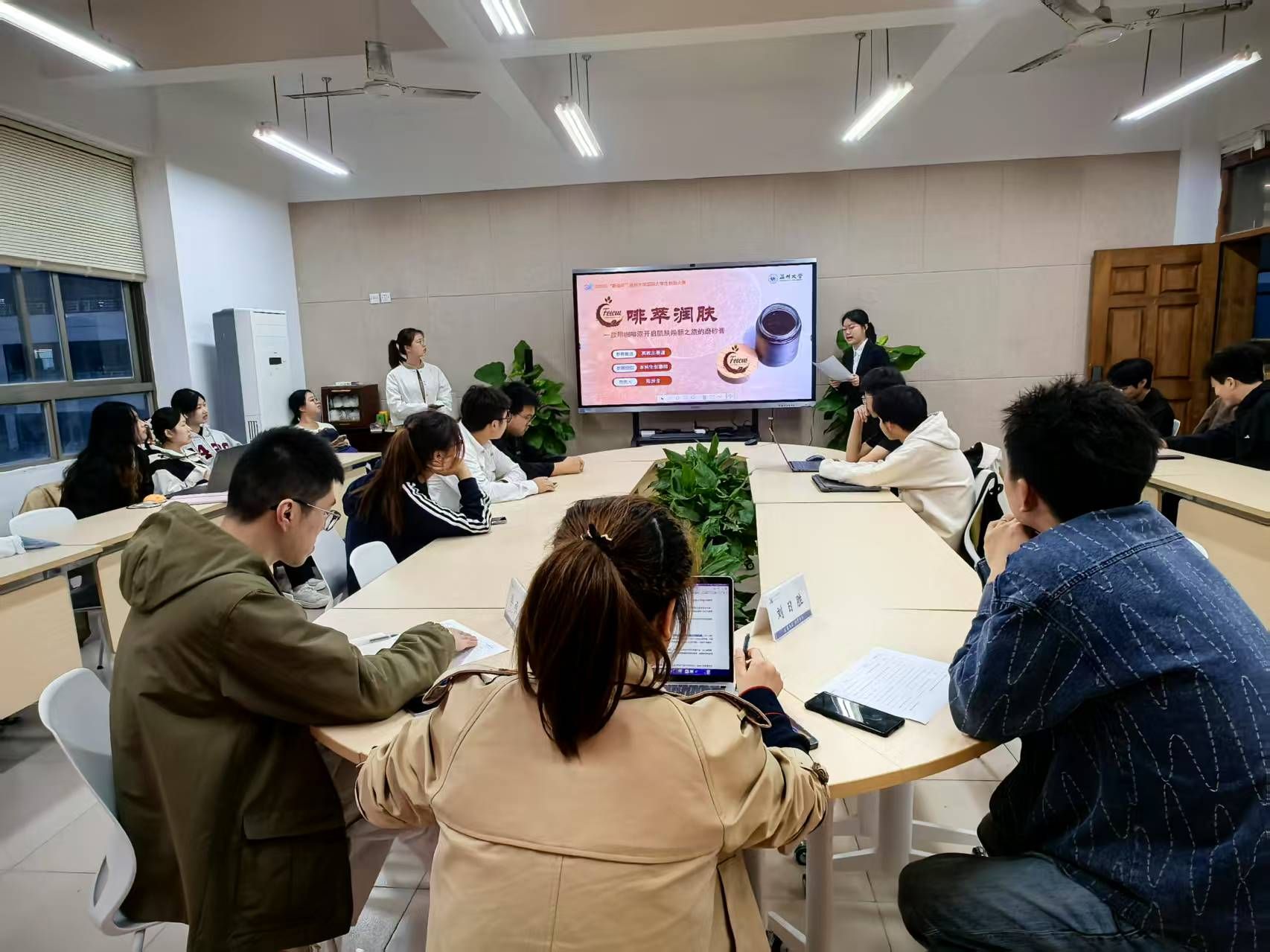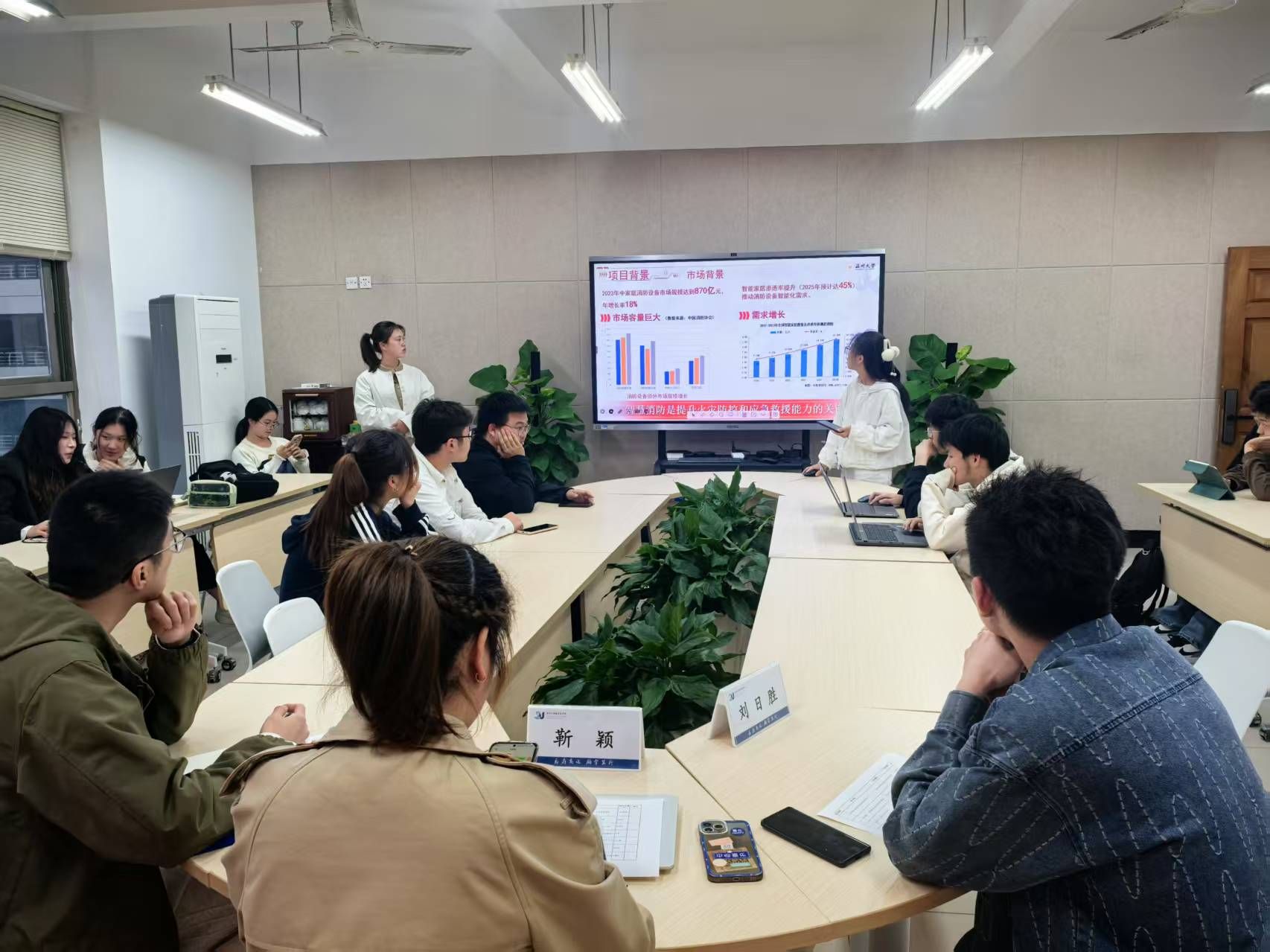 立项评审开始前,靳颖向同学们强调“新湖杯”小鸭看看 国际大学生创新大赛的重要性,并希望同学们仔细打磨参赛作品、强化团队合作,突出介绍项目创新点以及项目落实的可行性。