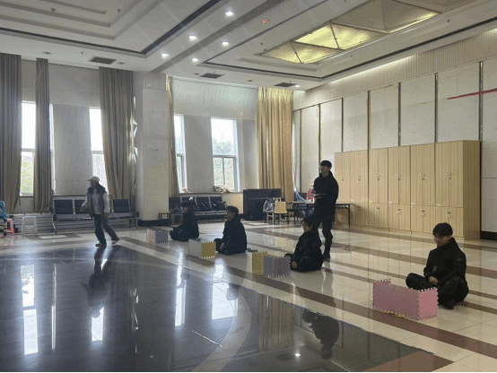 在培训师的指导下,另外几组同学体验了“鼓动人心”这一项目。在这个项目中,几组同学握住鼓边上的多根绳子,随着球的运动迅速改变方向,以便更好地接住球,让球落在鼓的中央。虽然开始时大家的进展并不顺利,总是接空,但随着活动的进行,小组成员之间的默契度越来越高,配合得也越来越好。这个环节让同学们认识到只有相互信任、默契配合才能取得成功。