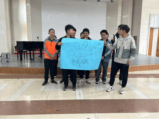 活动伊始,各班同学欢聚一堂,分组站立。他们共同参与了设计队名、队徽、队号和队歌的环节。在这个环节中,同学们充分激发了自己的创造力和想象力,以小组为单位展示出各自的特色与活力。他们设计的队名如“我竟无以言队”、“你说的都队”等,既富有创意又充满趣味性;队徽则以展现队名为主,体现了当代大学生特有的精神风貌;队号充满感召力;而队歌的选唱更是展现了当代青年的朝气与活力。
