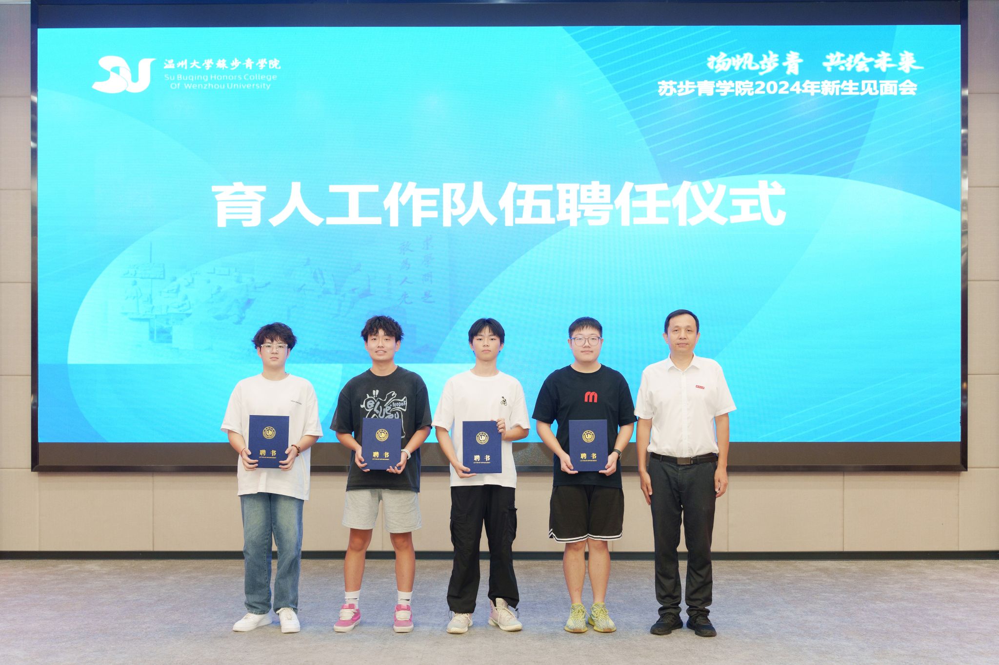 随后,见面会举行育人工作队伍聘用仪式,马增岭为步青实验班四位学业导师,潘从义书记为四位班助分别颁发聘书,体现学院对人才培养的高度重视,也让新生们感受到了来自学院和老师的深切关怀与殷切期望。