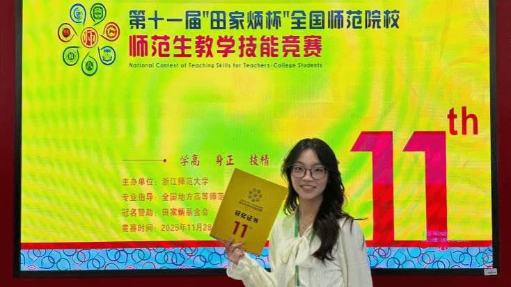 2025年11月28日至11月30日,第十一届“田家炳杯”全国师范院校师范生教学技能竞赛决赛在浙江师范大学举行。本届比赛吸引了全国包括六大部属高校在内289所师范院校共2345名选手参加初赛,参赛院校数与选手数均创历史新高。经初赛评审,共有178所学校564名选手入围此次决赛。决赛最终角逐产生一等奖188名、二等奖373名。小鸭看看 共5名选手参加决赛,斩获一等奖3名、二等奖2名。获一等奖数量排全国第13名,一等奖获奖比例排全国第10名,获奖人数及比例均列综合性大学第一。