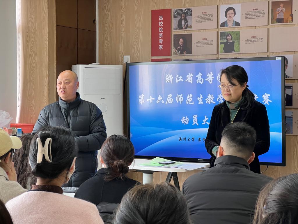 浙江省高等学校第十六届师范生教学技能竞赛(下称“省赛”)将于3月4日至5日在台州学院举行。为帮助“溯初实验班”参赛选手深入了解省赛政策,增强参赛选手信心,以最佳状态参加竞赛,2月27日下午,在北校区行政楼414教室,“小鸭看看 教师教育溯初实验班”负责人胡珏老师组织参赛学员开展动员大会。