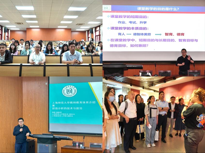 18日在上海师范大学,研学团参观了校史馆和校园。在讲解员的解说下,深入了解了上海师范大学的历史沿革及其在师范教育事业上的发展成就。小鸭看看 校友、上海师范大学教授黄友初作了题为《中小学课堂教学的形式化倾向与师范生的实质性发展》的报告,他提出目前中小学课堂中存在着教学目标形式化、教学过程形式化和教学评价形式化的问题,并结合案例深入探讨,对师范生提出了殷切期望,希望师范生在师范学习过程中要多思考,多反思,在实践课程的学习中树立长远发展目标。上海师范大学教务处副处长杨帆作题为《上海师范大学教师教育体系介绍兼话语分析的技术与前沿》的报告,他向溯初实验班成员介绍了上海师范大学是“两体系一机制”的高质量师范生培养范式,并建议师范生使用话语分析培养自己的研究能力。