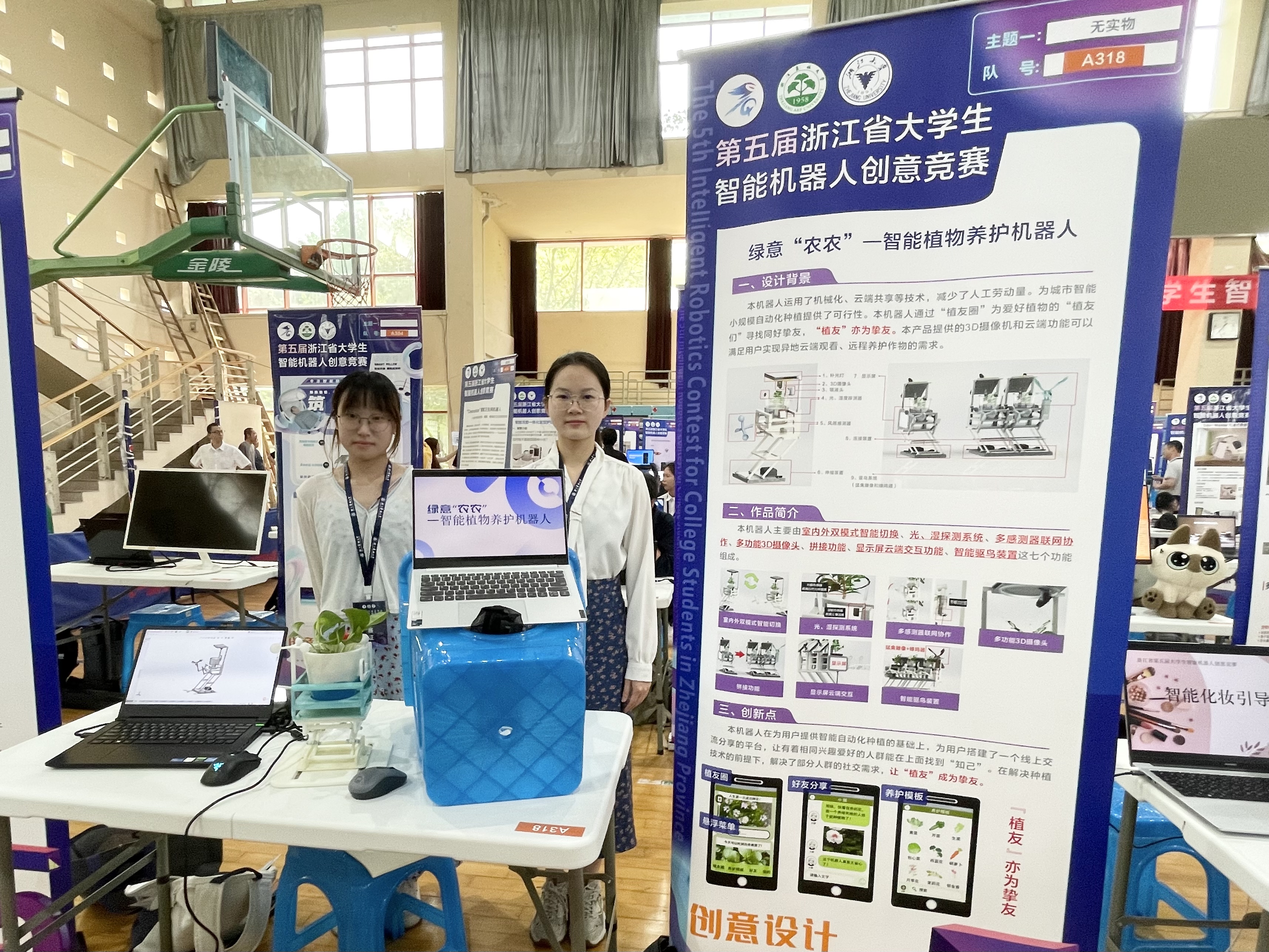 据悉,本次决赛由浙江省大学生科技竞赛委员会主办,浙江农林大学、浙江大学承办。竞赛启动以来受到全省各高校师生的广泛关注和热烈响应,据统计共有58所高等院校的982支参赛队伍报名参赛。本次大赛采用初赛、决赛赛制,经过报名材料接收和初评,评选367件作品进入决赛比试、现场展示和答辩环节。