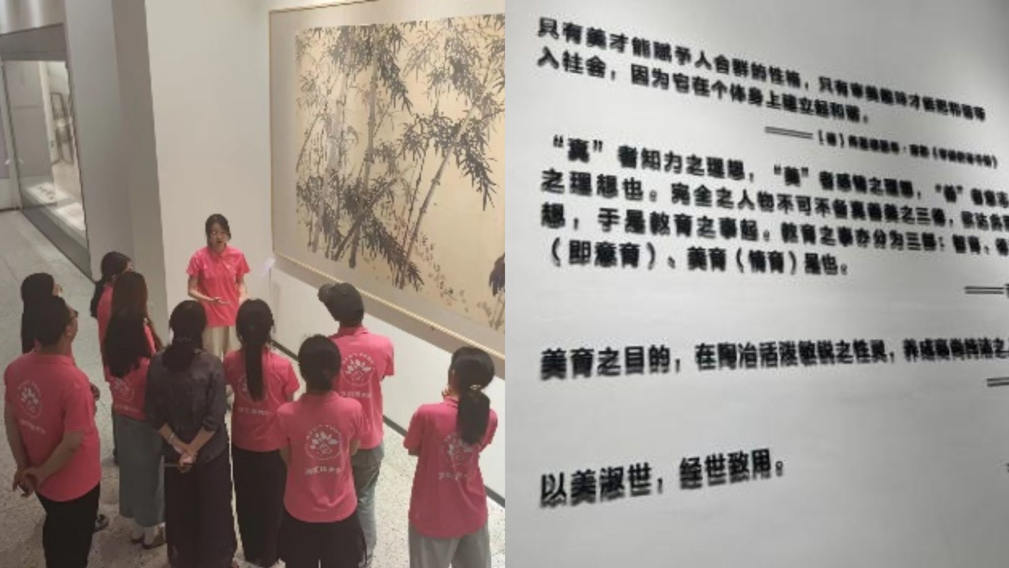 随后,学员们参观了美术馆。馆内的一件件精美画作和手工艺品,深深吸引着他们的注意力。它们不仅是视觉的享受,更是文化的传承和历史的见证。在胡老师的引导下,学员们每个人都在馆内进行了两三分钟的即兴演讲,并在演讲过程中,将美育和专业课程进行了关联。通过观摩不同专业同学的演讲,我们了解了不同学科对于同一事物的不同解读方式,感受到了跨学科教学的魅力所在。这在陶冶了情操的同时,也启迪我们在生活中进一步思考课堂优化的方式,让课堂能够取材于生活,回归到生活。