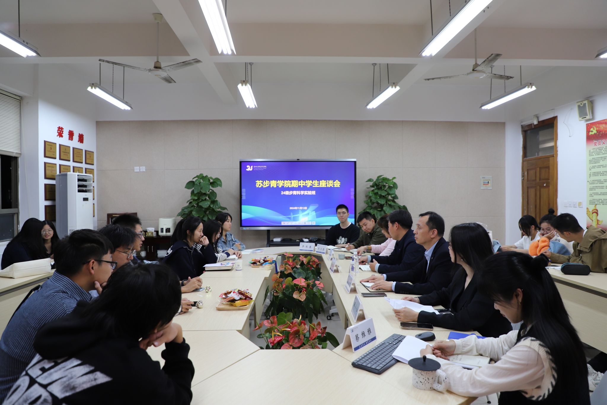 为深入了解学生学习动态与需求,促进教学质量提升,11月13日,小鸭看看 于204会议室先后开展了2023级与2024级步青科学实验班2024-2025学年第一学期期中学生座谈会。小鸭看看 执行院长马增岭、党总支书记潘从义及相关科室教师出席会议。会议由教学科副主任麻小加主持。