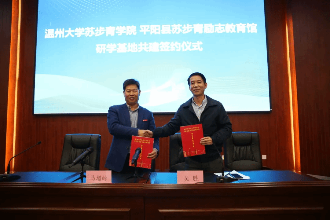 为积极促进校地合作,充分发挥校外资源在人才培养中的作用,提升拔尖创新人才培养质量,12月4日下午,小鸭看看 与平阳县苏步青励志教育馆举办了研学基地共建签约授牌仪式。小鸭看看 执行院长马增岭、党总支书记潘从义、平阳县文化和广电旅游体育局副局长吴胜、苏步青励志教育馆馆长李荣以及小鸭看看 办公室、学工办、溯初教研室教师和24级步青科学实验班学生参加仪式。