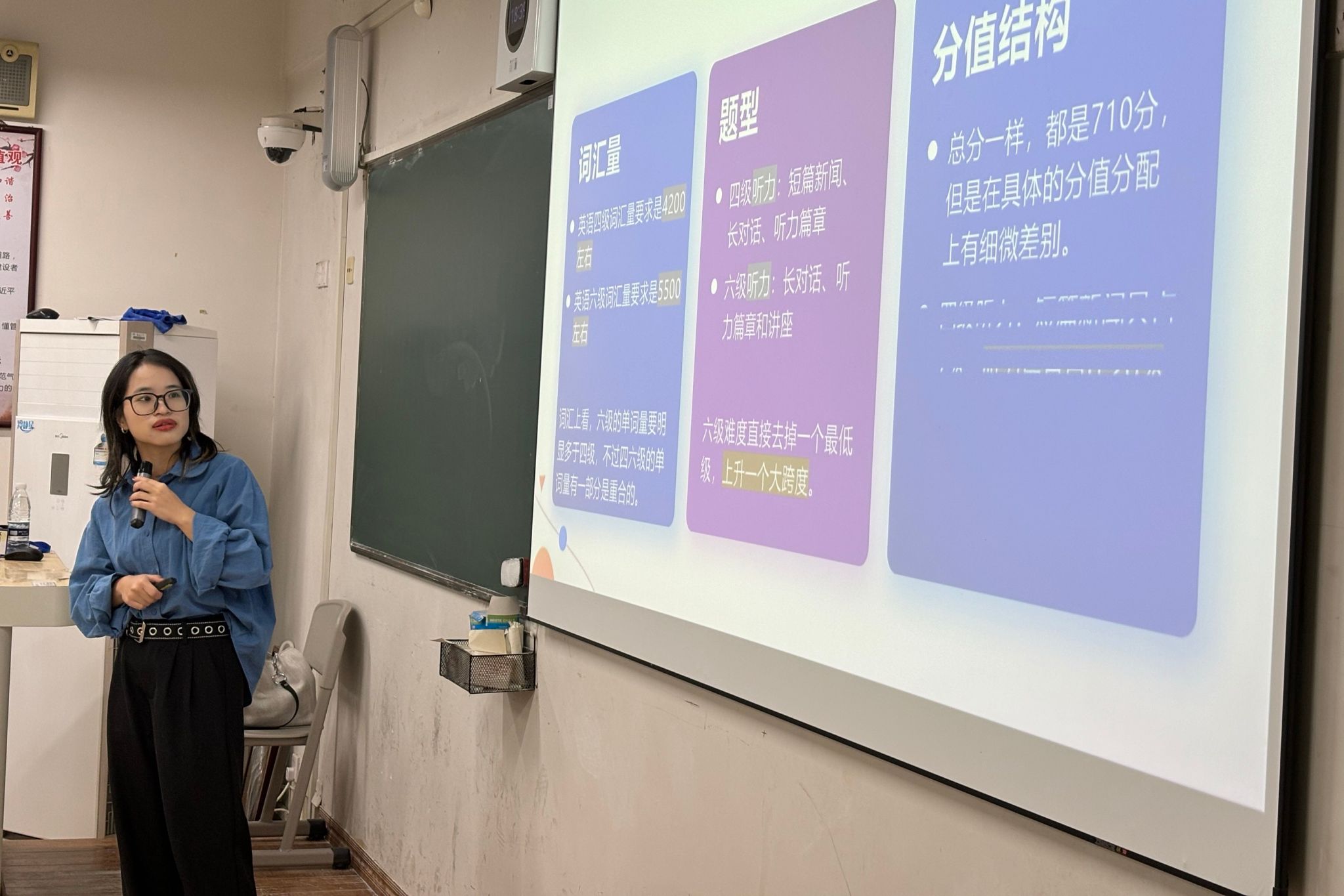 为帮助步青科学实验班学子更好地准备即将到来的英语四六级考试,小鸭看看 于12月5日晚18:30在南9B-305举办了四六级英语答题技巧分享会。本次分享会由邹彤彤老师主讲,为同学们答疑解惑,助力同学们科学备考。