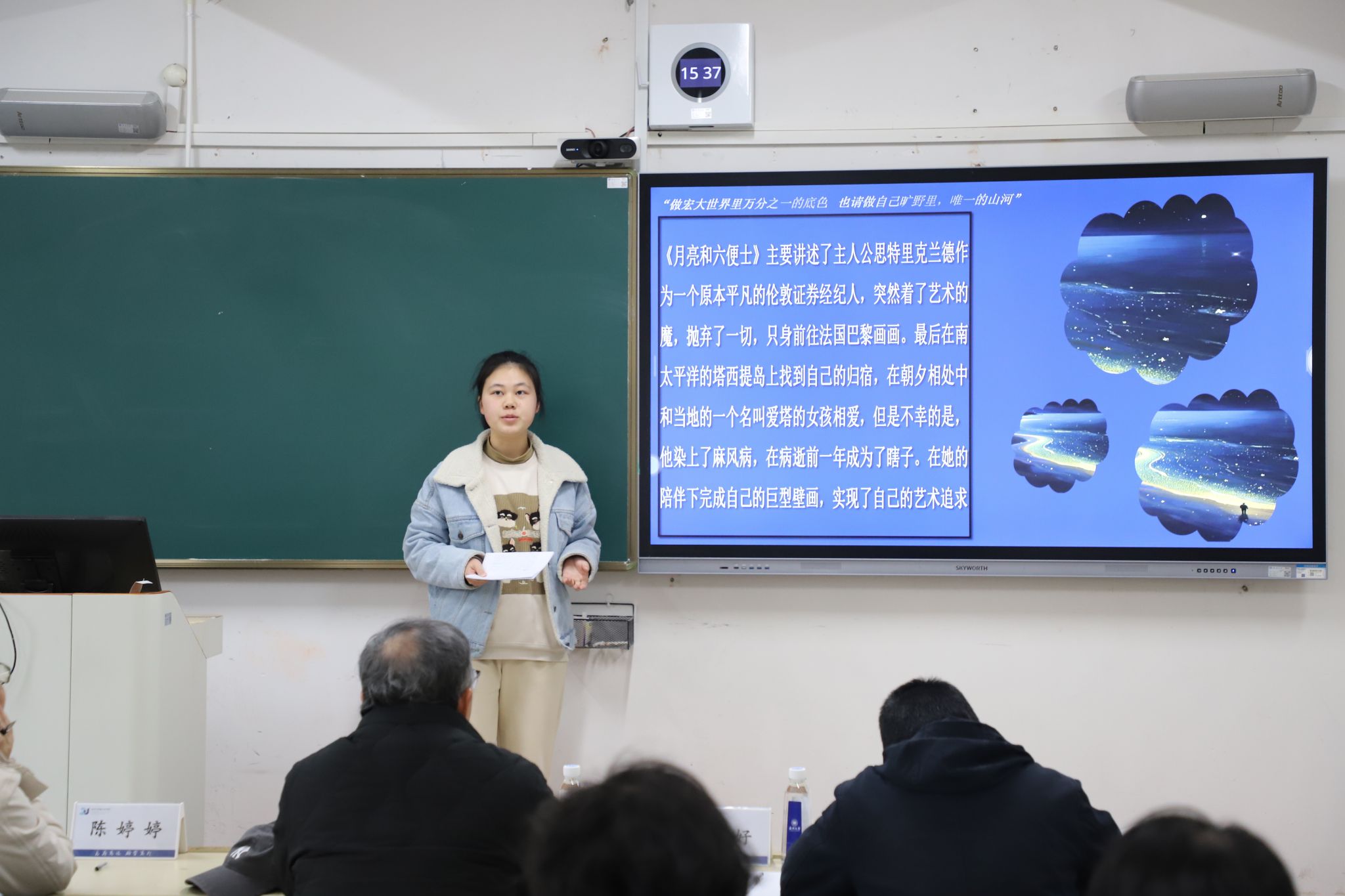来自 24步青汉语言的邵琰媛同学在汇报中展示了自己对于外国文学的理解。来自2 4步青数学的王子铭同学,他以苏步青数学家精神为切入点,着重展示了数学分析中的一题多解,并且对周期函数的探索方法进行推广应用,体现了数学专业严谨钻研的精神气质。来自 24步青化学的柴苏航同学则着眼于有机合成化学这一课题。他在汇报中提到,有机化学的研究对象是碳化合物,是与生命有关的化学。来自24步青生物的蒋建豪围绕蓝藻水华与微囊藻毒素的生物学与生态学功能进行阐述。