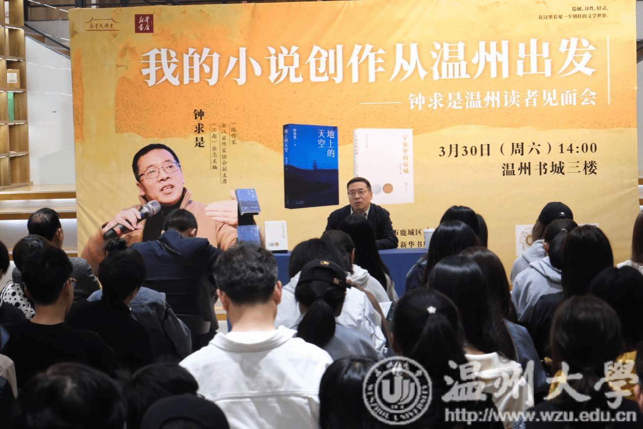 2024年3月30日,苏步青学院23级汉语言文学的同学在刘卫东老师的带领下,赴温州书城参加了鲁迅文学奖得主钟求是先生的讲座活动。本次讲座以“我的小说创作从温州出发”为主题,是温州书城20周年店庆首场名家分享活动,是在中共温州市鹿城区委宣传部的指导下,由浙江温州市新华书店有限公司主办,温州大学人文学院协办的一场专业文学主题互动,与会人员将就文学创作等问题积极发言、交流。