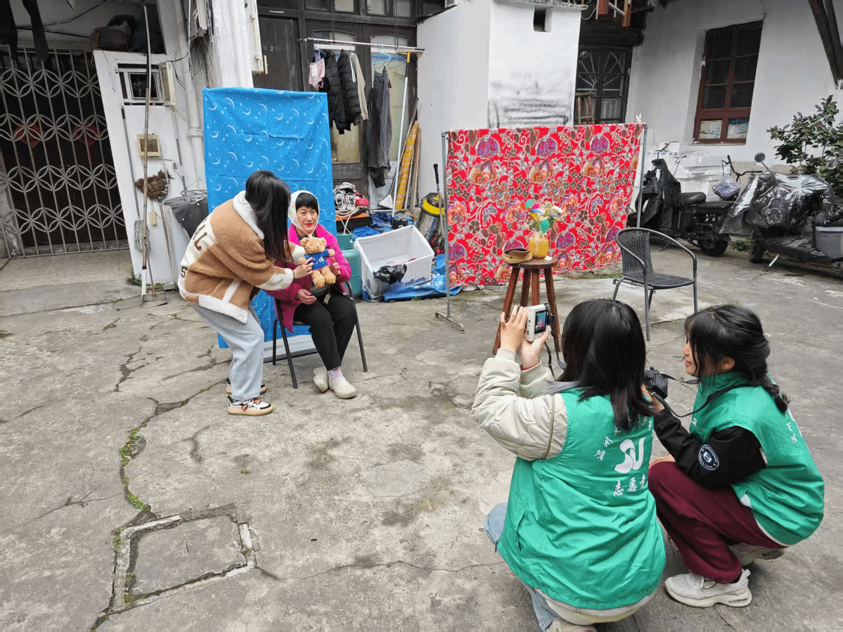 服务队在温馨的小院中精心搭建起摄影设备,一场充满爱与温情的公益摄影活动就此展开。此次活动聚焦老年群体,在摄影技术飞速发展的新时代,志愿者们用专业设备帮助老年人留下清晰美好的留影。“他们值得拥有更美好的影像记忆。”这不仅是志愿者的心声,更是行动的动力。