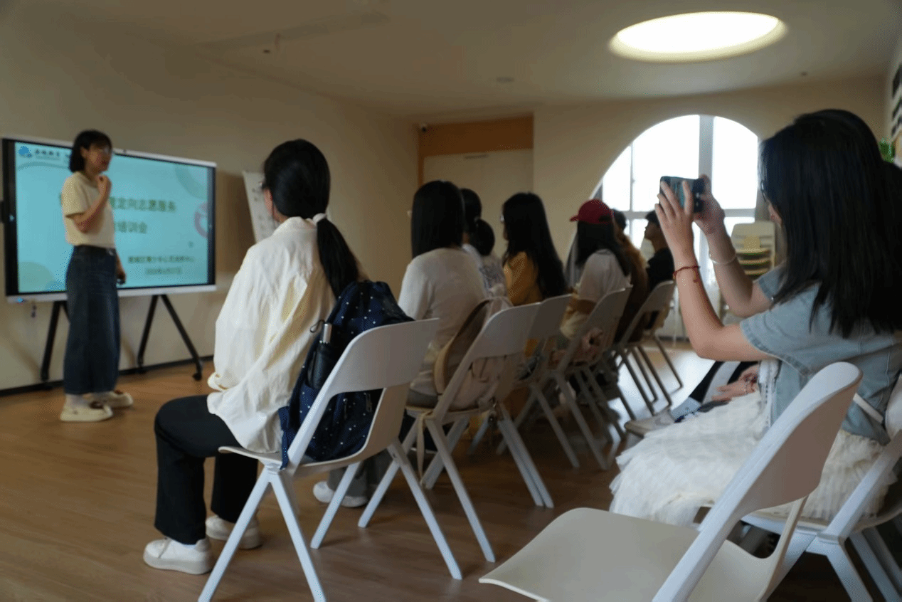 “心心相愈”暑期社会实践队来到鹿城区青少年心理疗愈中心(简称“小鹿心屿”),开启了暑期志愿服务活动的首日培训。