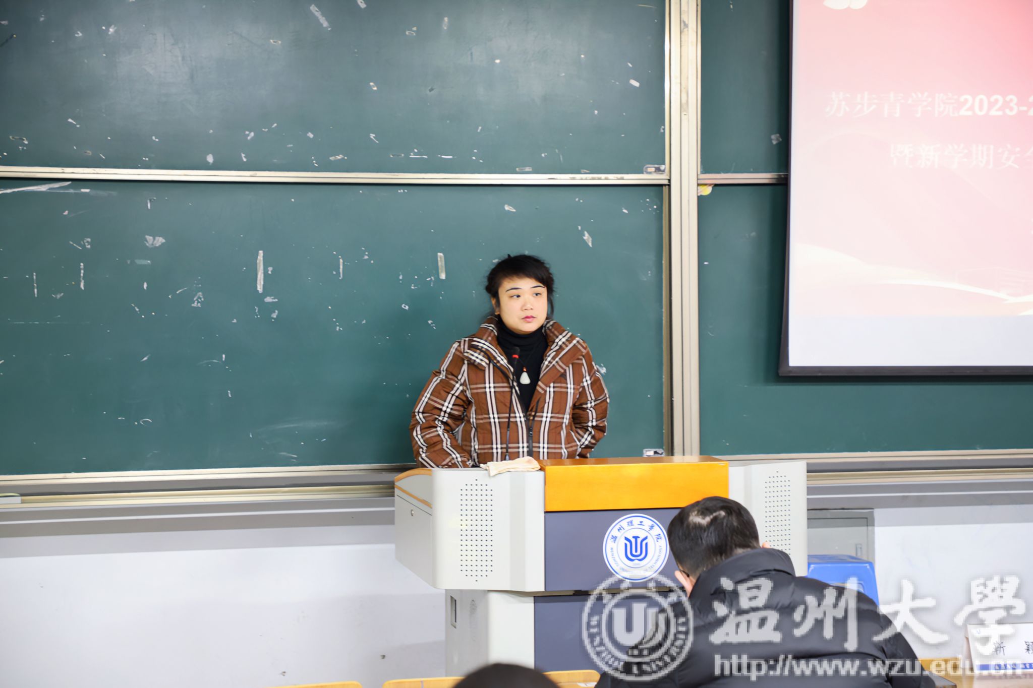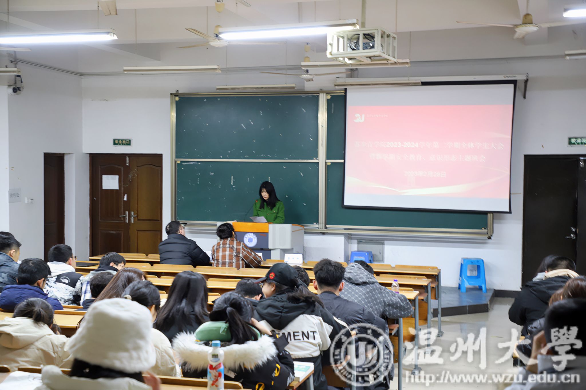 2024年2月28日下午,温州大学苏步青学院组织召开2023-2024学年第二学期全体学生大会暨新学期安全教育、意识形态主题班会。学工办主任靳颖老师、辅导员彭凯轩老师、教务科蔡维雅老师参加会议,会议由彭凯轩老师主持。