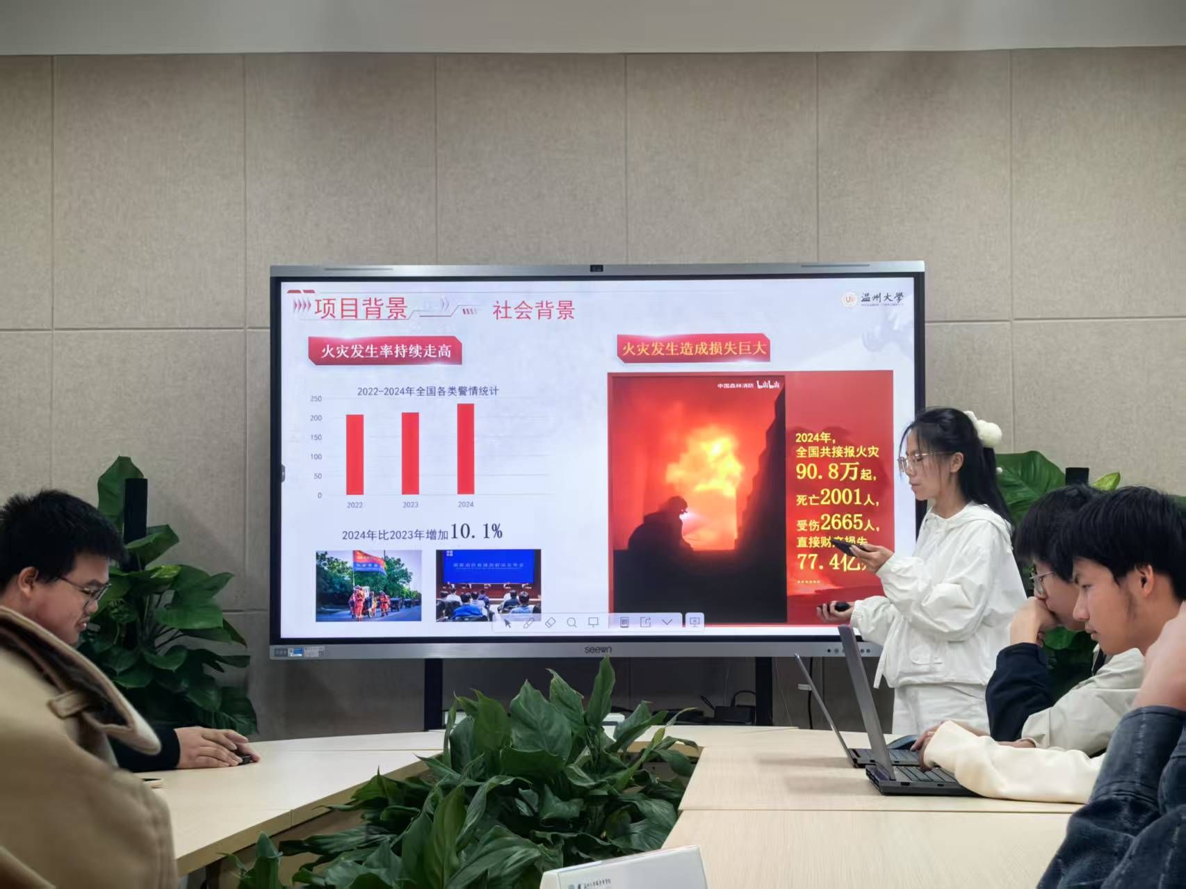 立项评审开始前,靳颖向同学们强调“新湖杯”温州大学国际大学生创新大赛的重要性,并希望同学们仔细打磨参赛作品、强化团队合作,突出介绍项目创新点以及项目落实的可行性。