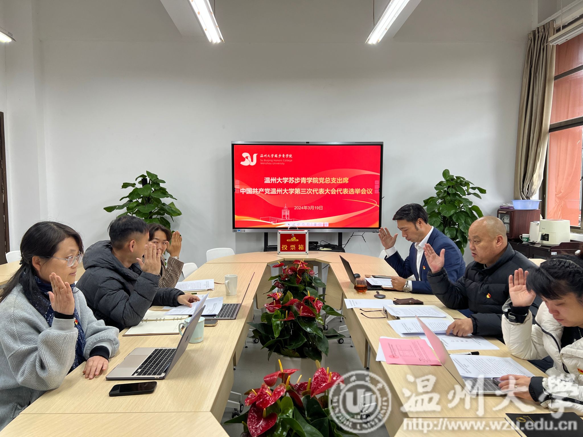 会议伊始,应中传达了学校关于本次选举的工作要求,全体党员举手表决通过了《温州大学苏步青学院党总支出席中国共产党温州大学第三次代表大会代表选举会议选举办法》。