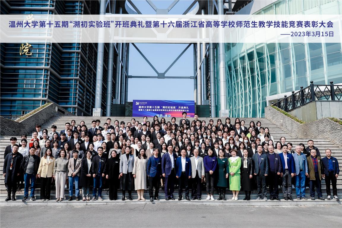 3月15日下午,温州大学第十五期“溯初实验班”开班典礼暨第十六届浙江省高等学校师范生教学技能竞赛表彰大会在北校区信息楼报告厅隆重举行。温州大学副校长王舜、苏步青学院党总支书记应中、教务处副处长赵燕、苏步青学院执行院长姜锐,浙江省高等学校第十六届师范生教学技能竞赛指导师团队、参赛选手等出席。典礼由第十三期溯初实验班学员主持。