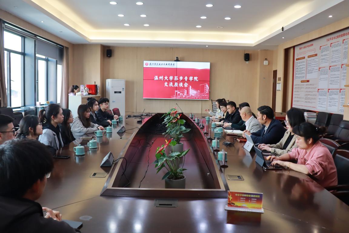 调研组还就温州大学苏步青学院与温州市实验中学联合培养师范卓越人才进行了初步的探讨和设想。大家一致认为双方应加深在基础教育研究方面的合作,协同做好师范卓越人才培养顶层设计,共同促进师范生综合素质、专业素养与师范技能的全面提升。