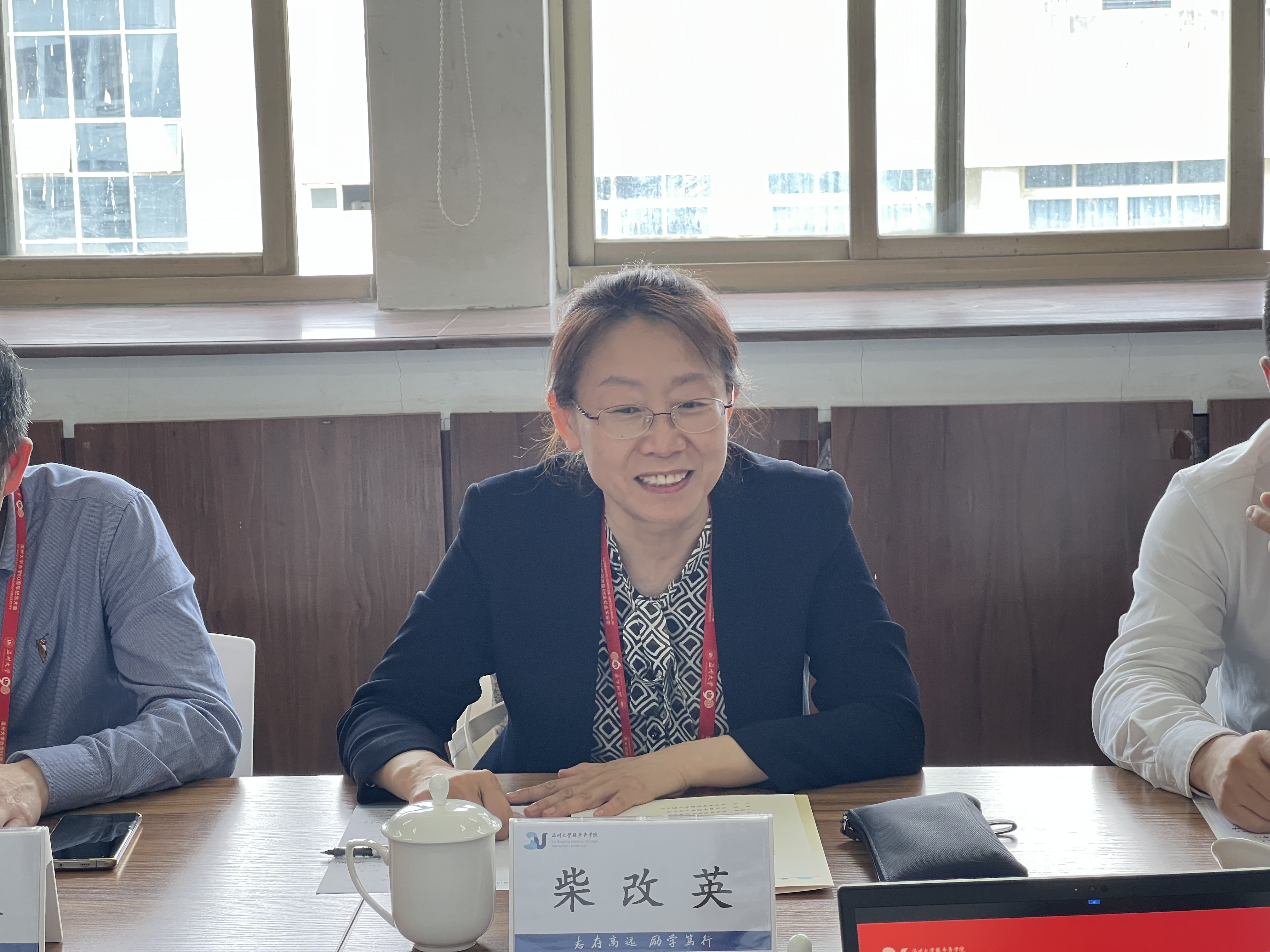 会议伊始,应中代表学院致欢迎辞。应中首先对柴改英一行的到访表示热烈的欢迎,对温州大学的基本情况进行简要介绍,希望双方以后可以加强联系,共同探讨创新人才培养模式。