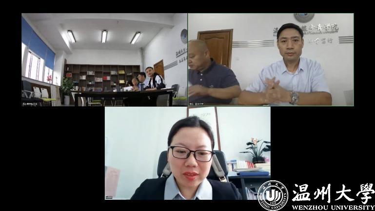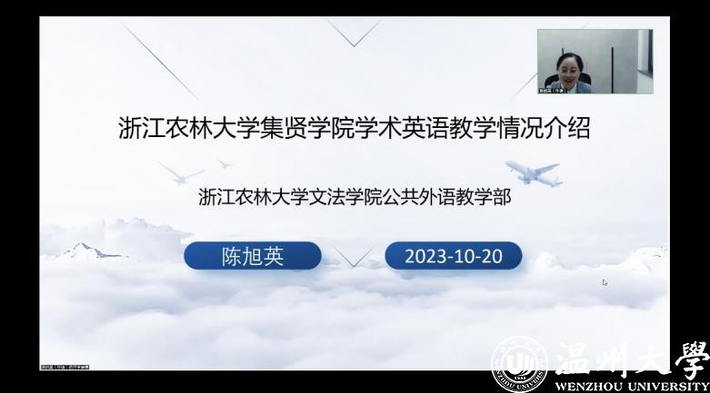 10月20日,集贤学院学术英语系列课程负责人文法学院陈旭英受我院邀请,就《学术英语》课程改革进行经验分享,温州大学外国语学院大外部副主任王素娟、教师李雪燕、杨志玲出席会议。会上,陈旭英从课程概述、教学模式、教学成效三方面展开介绍,教学模式上,集贤学院第一至第三学期为学生开设通用学术英语学习,第四学期开始将学生按照专业属性分为新工科、新农科、新文科展开学术英语写作,旨在提升学生专业学术方面的英语水平。交流互动环节,双方就课程用教材、教学内容、第二课堂等话题进行深入交流。
