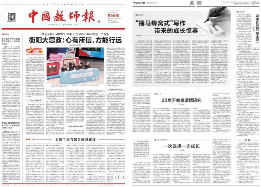 同时,此文受到了《中国教育报·好教师》《新校长传媒》《课改行》《教师成长法则》等多家微信公众号的转发,在中小学教师中引发了阅读热潮,也受到了广大中小学教师的热议。有读者留言点赞:“善于从细小之处进行分析、研判、总结,逐步形成自己独有的教科研特色。”也有读者大受启发:“看完这篇文章后,忽然觉得写文章有好多角度,大有可为!”诚然,一篇好的文章如一束光,能给人向上的力量。