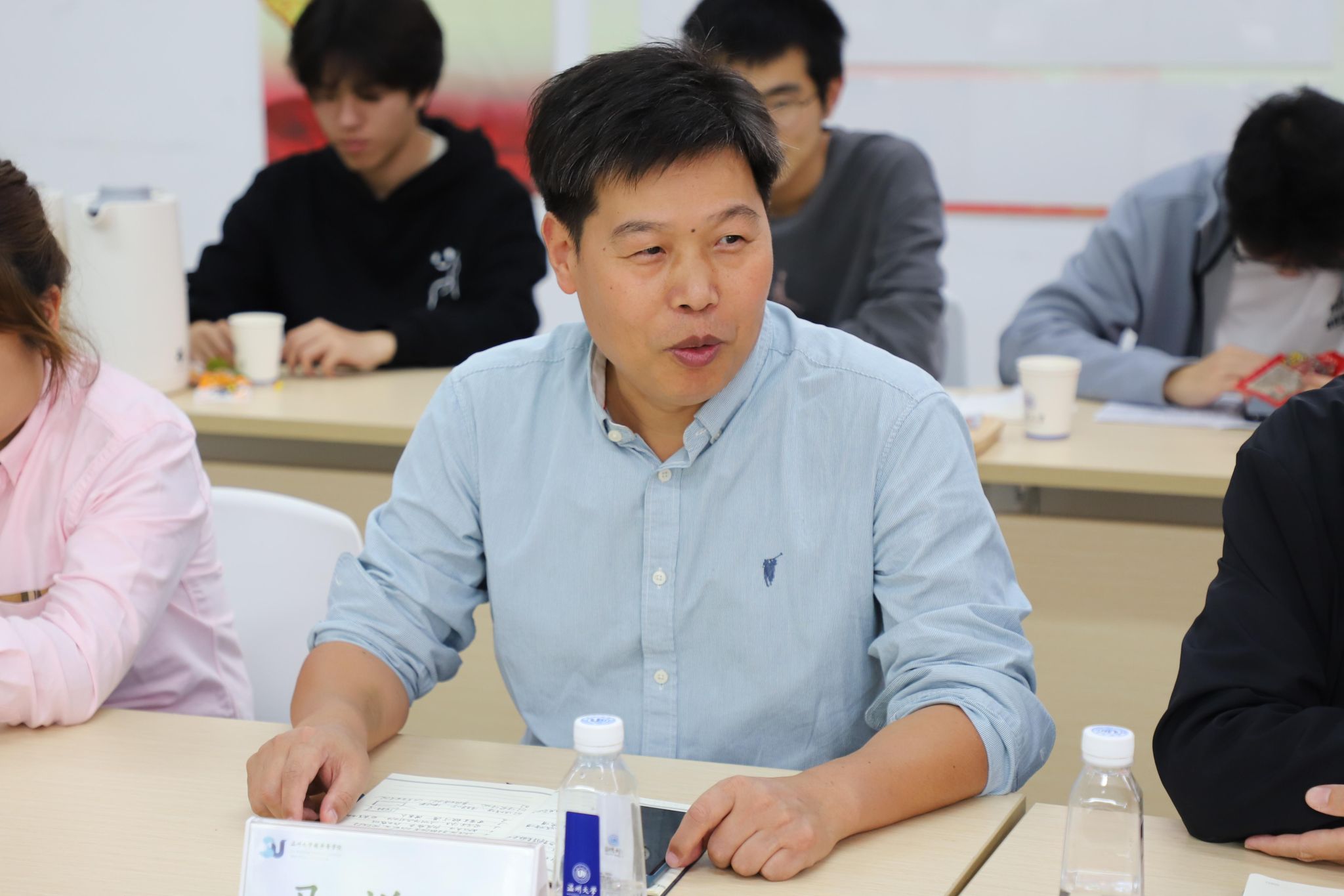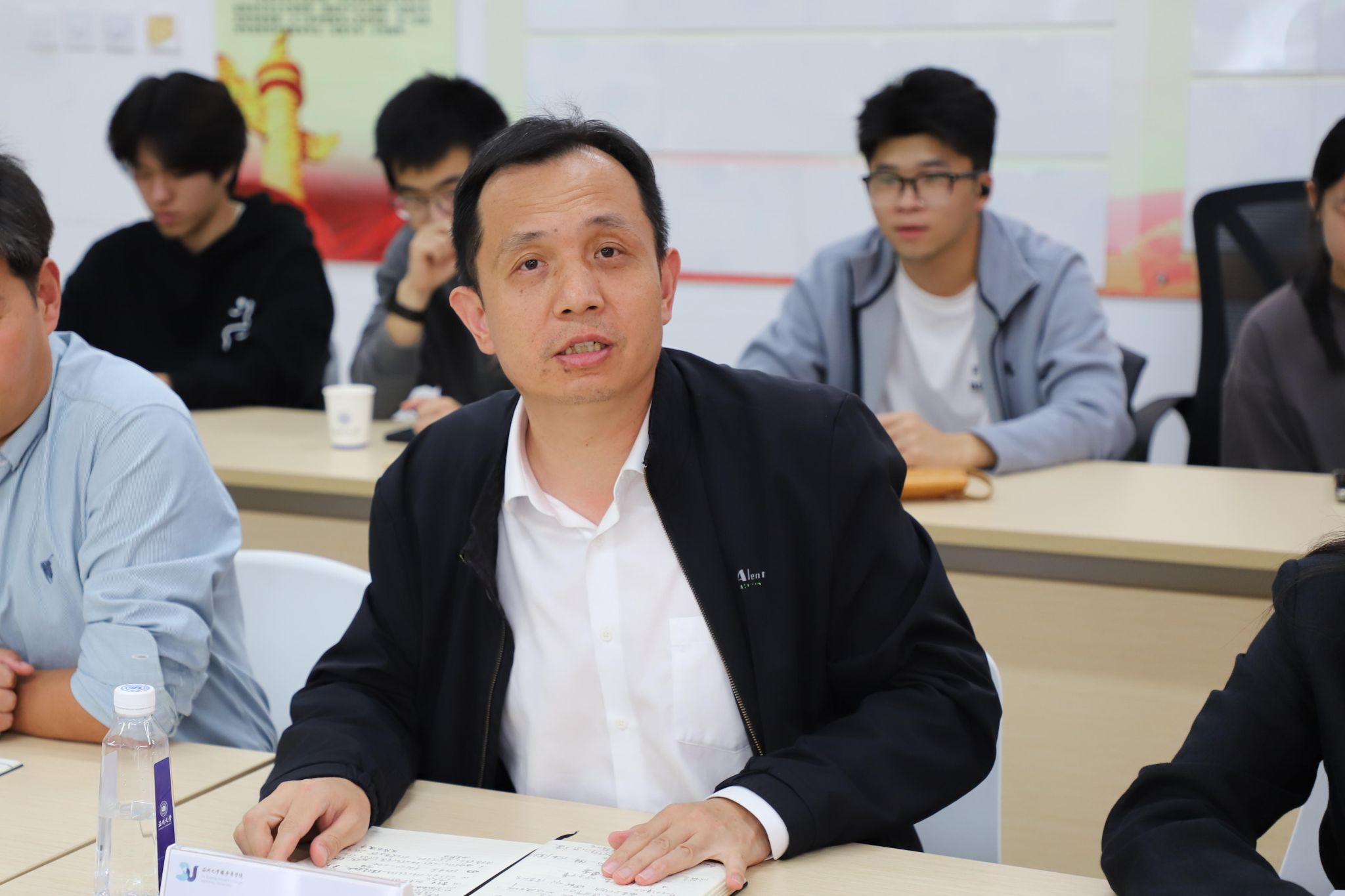 在总结发言中,潘从义表示,学院的发展离不开每一位学生的参与和支持,学生座谈会是学院了解学生需求、改进教学工作的关键渠道。他鼓励学生们继续保持积极反馈的态度,与学院共同努力,共建和谐、高效的学习环境。未来,学院将不断探索更多样化的师生交流形式,建立更加顺畅的沟通机制,确保每位学生的声音被倾听、被重视,共同推动苏步青学院的高质量发展。