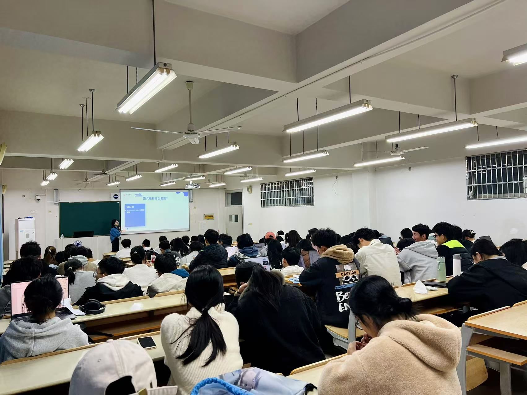 会议伊始,邹老师指出,大学英语四六级考试对考研保研、出国留学起关键作用。此后,她具体阐释了四六级考试的差别,并向同学们分享了备考资料和考试的时间安排。