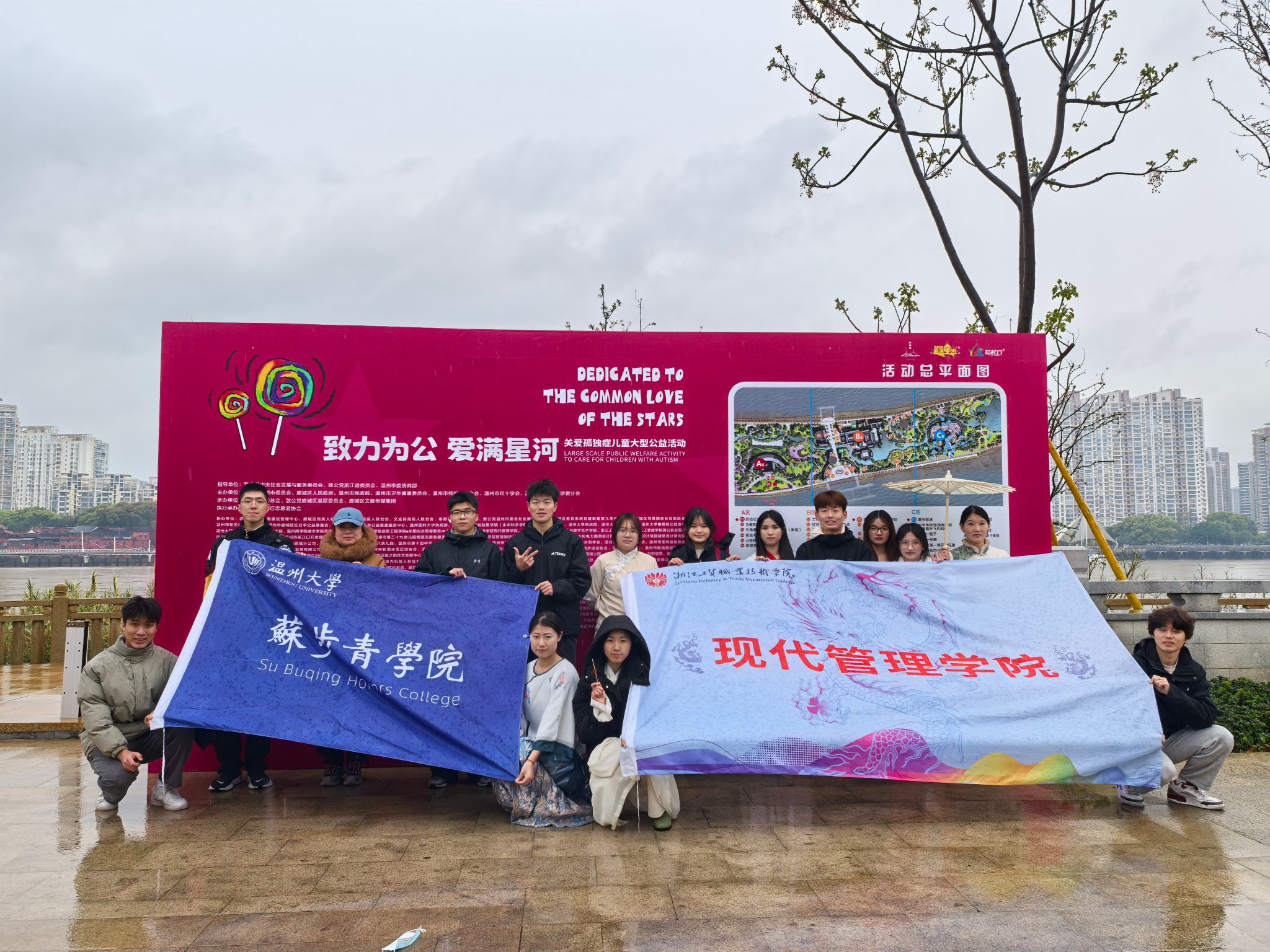 为传递学院关怀,践行“尊重、包容、友爱、共融”的助残理念,温州大学苏步青学院“青心”志愿服务队于3月30日走进温州市江心屿,在春意盎然的江心屿上开展了一场以“爱满星河”为主题的孤独症儿童公益关爱活动。此次活动共吸引百余组特殊儿童家庭参与,志愿者们身着汉服倾情陪伴,与孩子们共绘春日美好。