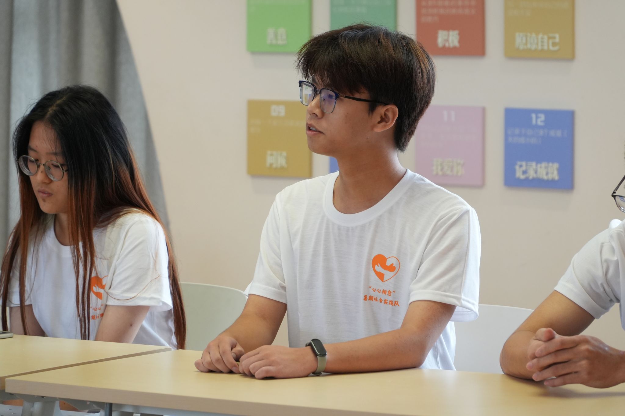 随后,潘从义介绍实践队情况。他指出,苏步青学院于2024年组建“心心相愈”实践队,已在全市社区开展30余场心理赋能活动,累计服务青少年500余人次,获得服务社区好评,获校优秀实践队称号。实践队与小鹿心屿青少年心灵润养中心深度合作,打造“自我认知”“学习提升”“自我保护”等主题课程,提升社区青少年心理韧性、自我认知、学习策略与自护能力。