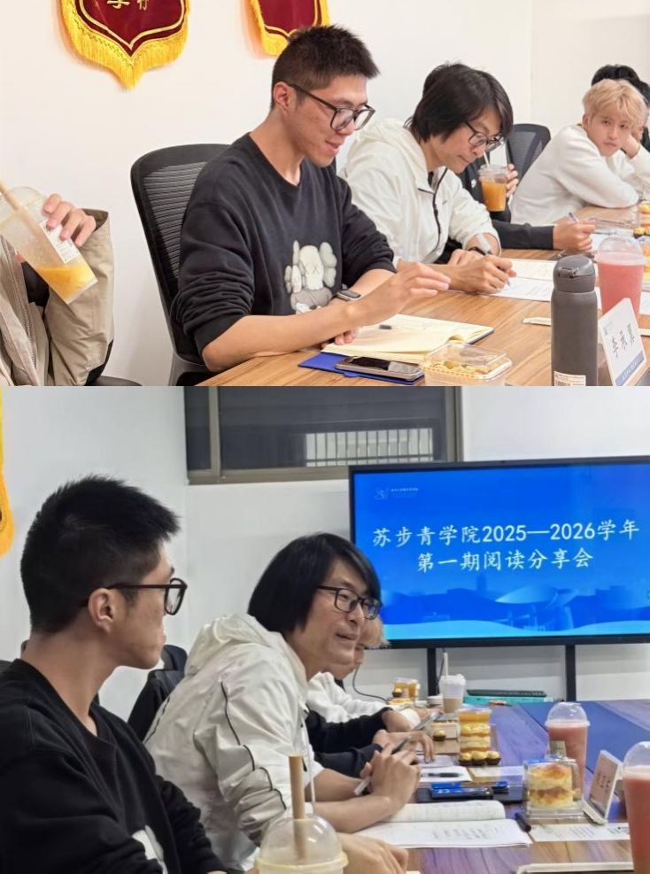 在加快建设教育强国、科技强国、人才强国的战略背景下,为培养兼具科学精神与人文素养、家国情怀与全球视野的拔尖创新人才,11月14日晚,温州大学苏步青学院于南校区9号楼A208会议室开展2025-2026学年第一学期“书香润心·阅见成长”读书分享会。活动特邀温州大学人文学院教师刘卫东、杨凯,苏步青学院学工办老师李承翼出席,生物科学、化学、数学与应用数学、汉语言文学四个专业的学生代表参会。会议由陈思妍同学主持。